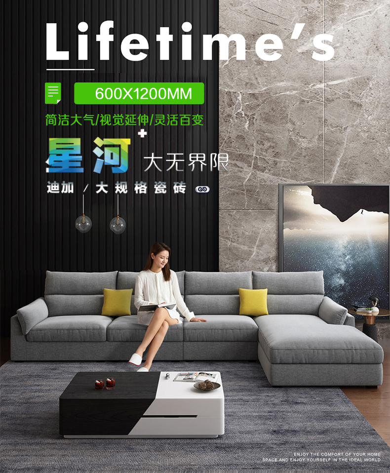 年轻一代视野开阔,时尚感更强,他们追求个性彰显自我,乐于迎接变化。看惯了方方正正的形状,悄然喜欢上长条形600X1200MM。