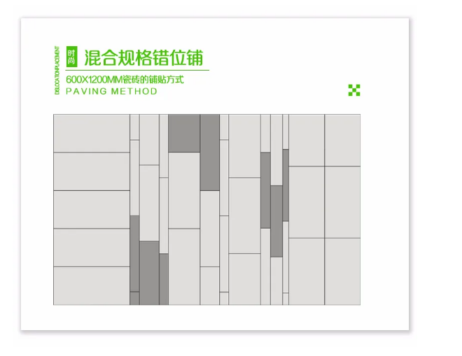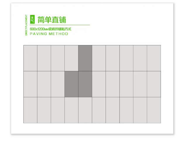 郑州邵辉互动娱乐开发有限公司600x1200MM系列的铺贴方式多样化,直铺、工字型、回字形、混合铺贴等等都可适用,只有你想不到没有办不到的。